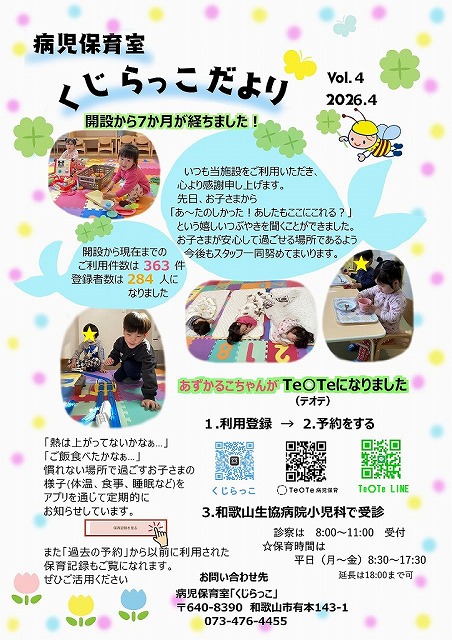 - 〒640-8390 和歌山市有本143-1(和歌山生協病院 小児科棟2階)